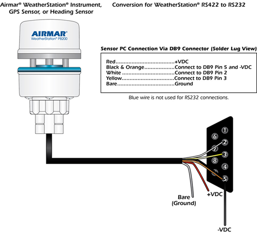 AirMar公司生產(chǎn)的WX系列超聲波氣象儀,標準NMEA0183或者NMEA2000數(shù)據(jù)格式輸出,RS422輸出,波特率都是4800。可以通過WeatherCaster軟件、超級終端、串口調試助手或者其他串口調試程序都超聲波氣象站進行調試。 如果需要配置成RS232輸出,連接方式如下圖所示: