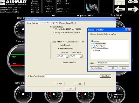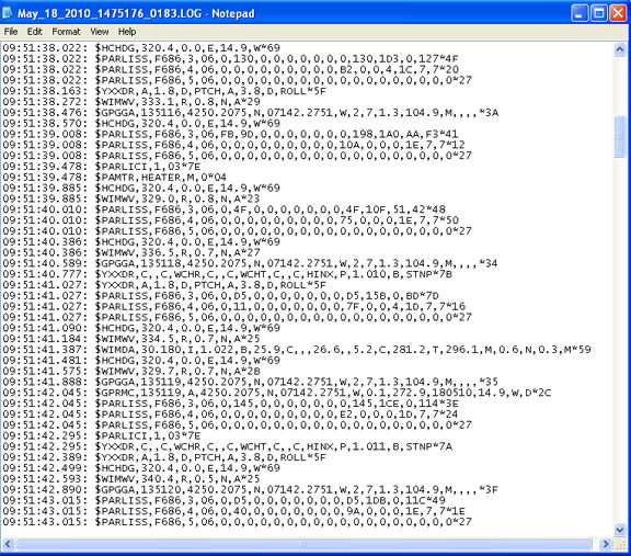 Airmar的WeatherCaster PC軟件可以將來自Airmar氣象傳感器的原始數(shù)據(jù)記錄到文本(.txt)文件中。此選項(xiàng)位于高級設(shè)置下面的“Communications/Diagnostics”選項(xiàng)卡下。使用窗口左下方的復(fù)選框來選擇您PC上的保存路徑來記錄文件。請注意,如果您長時(shí)間運(yùn)行WeatherCaster軟件,文本文件將非常大。如果WeatherCaster軟件運(yùn)行時(shí)間超過24小時(shí),則當(dāng)新的一天開始于上午12:00時(shí),將自動(dòng)創(chuàng)建一個(gè)新的數(shù)據(jù)文件,并且該日志文件將保存在計(jì)算機(jī)上與上一個(gè)數(shù)據(jù)文件相同的位置。文件名將包含日期,例如May_18_2010_1475176_0183.LOG。該文件可以使用記事本打開。高級用戶可以將數(shù)據(jù)導(dǎo)出到Excel電子表格中進(jìn)行制圖。