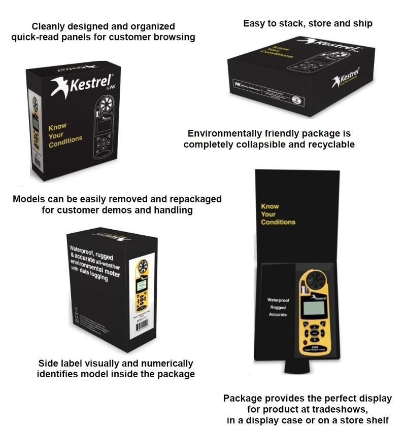 美國(guó)NK公司近日推出手持式氣象儀的新包裝,從2013年6份起,所有新訂購(gòu)的手持式氣象儀將全部啟用新包裝。新包裝將更加醒目,更加堅(jiān)固,更加適應(yīng)遠(yuǎn)程運(yùn)輸或快遞。