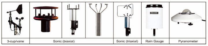 ? 其他可選氣象傳感器有:空氣溫度、相對濕度,太陽輻射、大氣壓力、降雨量、能見度儀等